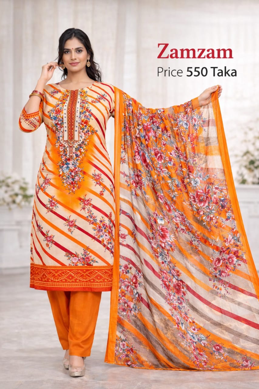 Zamzam ব্র্যান্ডের এই স্টাইলিশ ও আরামদায়ক থ্রি-পিস ড্রেসটি দৈনন্দিন ব্যবহার ও ক্যাজুয়াল আউটিংয়ের জন্য আদর্শ। সুন্দর প্রিন্ট ও আরামদায়ক কাপড়ের নিখুঁত সংমিশ্রণ।